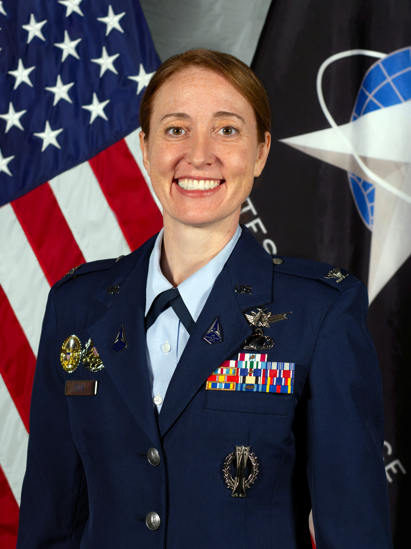 Ellen Ellis, from North Kingstown, Rhode Island, is a colonel and an acquisitions officer in the United States Space Force. She currently serves as a senior materiel leader in the National Reconnaissance Office (NRO) Communications Systems Directorate. She is responsible for fielding commercial cloud and traditional information technology hosting solutions and building modernized data centers for the NRO. She previously served as an Intercontinental Ballistic Missile operations officer and GPS satellite engineer, and she also developed geospatial intelligence payloads and ground processing systems.