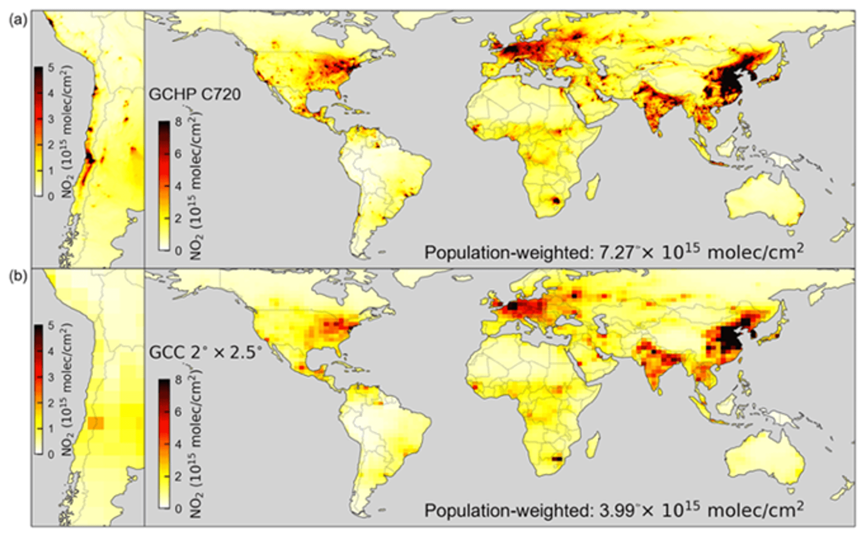 For comparison, the original GEOS-Chem model that was developed in 2001 only produced global simulations at a spatial resolution of about 200 by 250 square kilometers – an area about twice as large as the entire state of New Jersey.